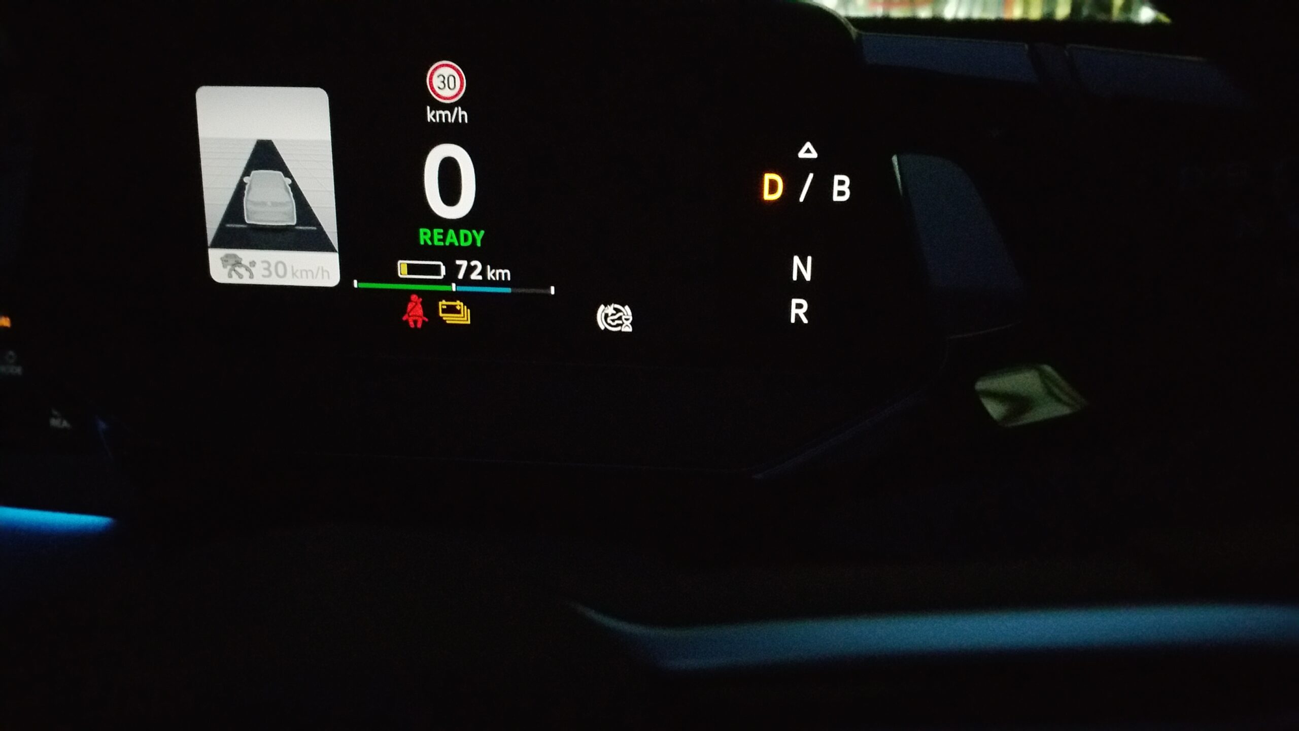 Anzeige nach der Fahrt: 72 km Reichweite.